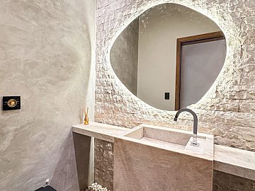 Lavabo com espelho orgânico iluminado