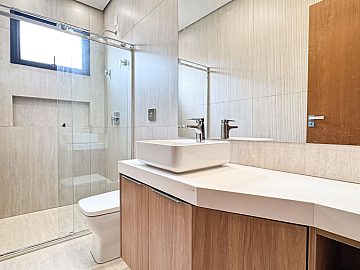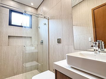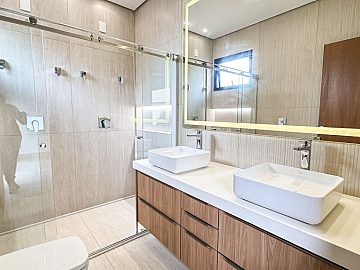 3 Suítes sendo a master com porta balcão blackout automatizada, duas cubas e dois chuveiros