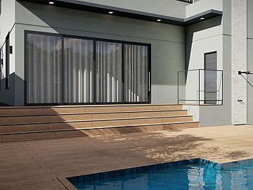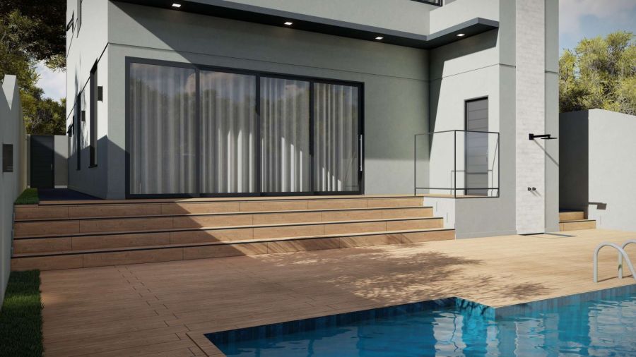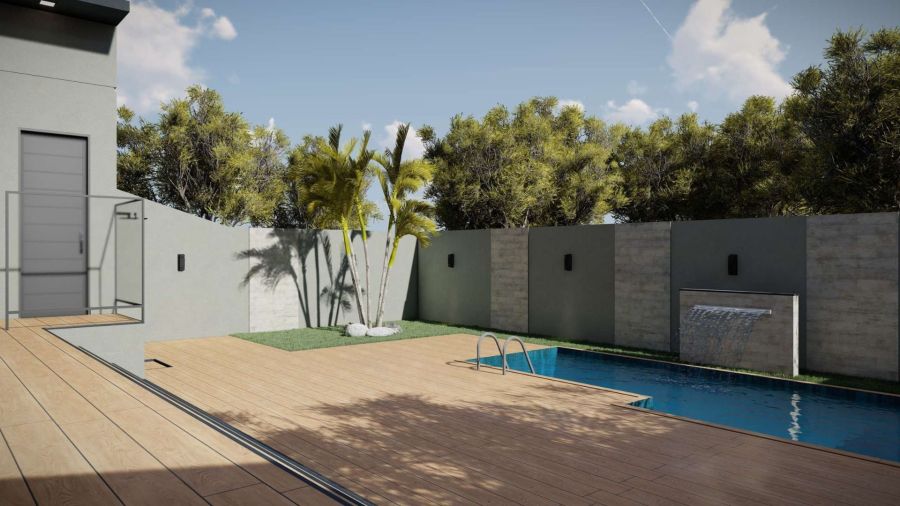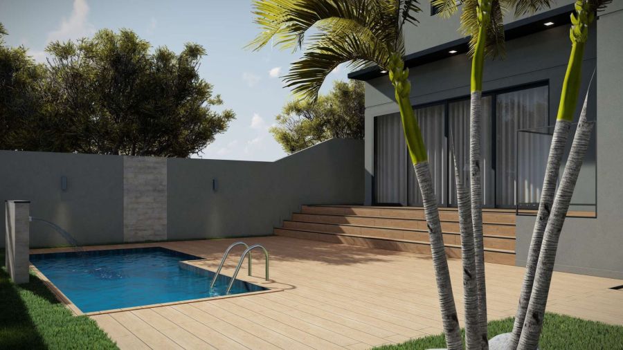 Piscina com aquecimento e cascata