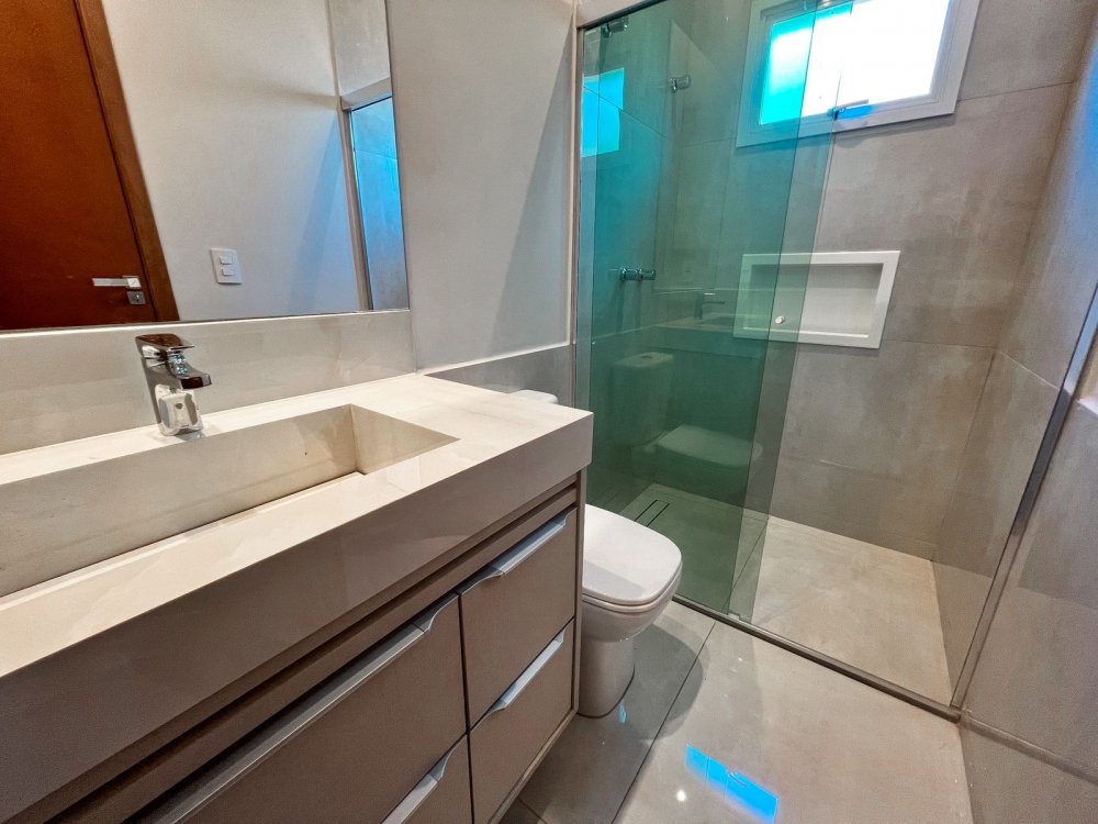 4 suítes, sendo a master com duas cubas e porta balcão